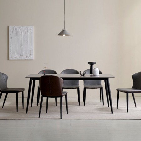 자모네 보노바 네트 4인용 포세린 세라믹 식탁 세트 화이트상판 화이트다리 다크그레이의자4개
